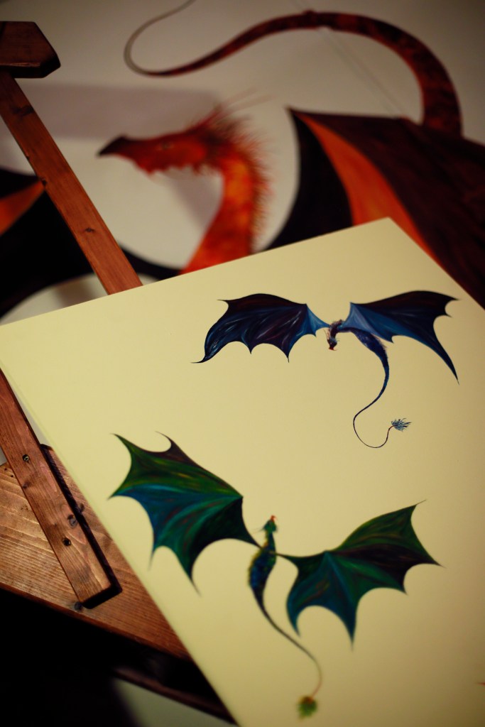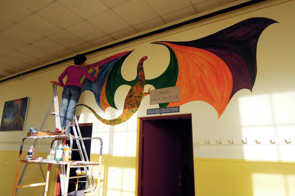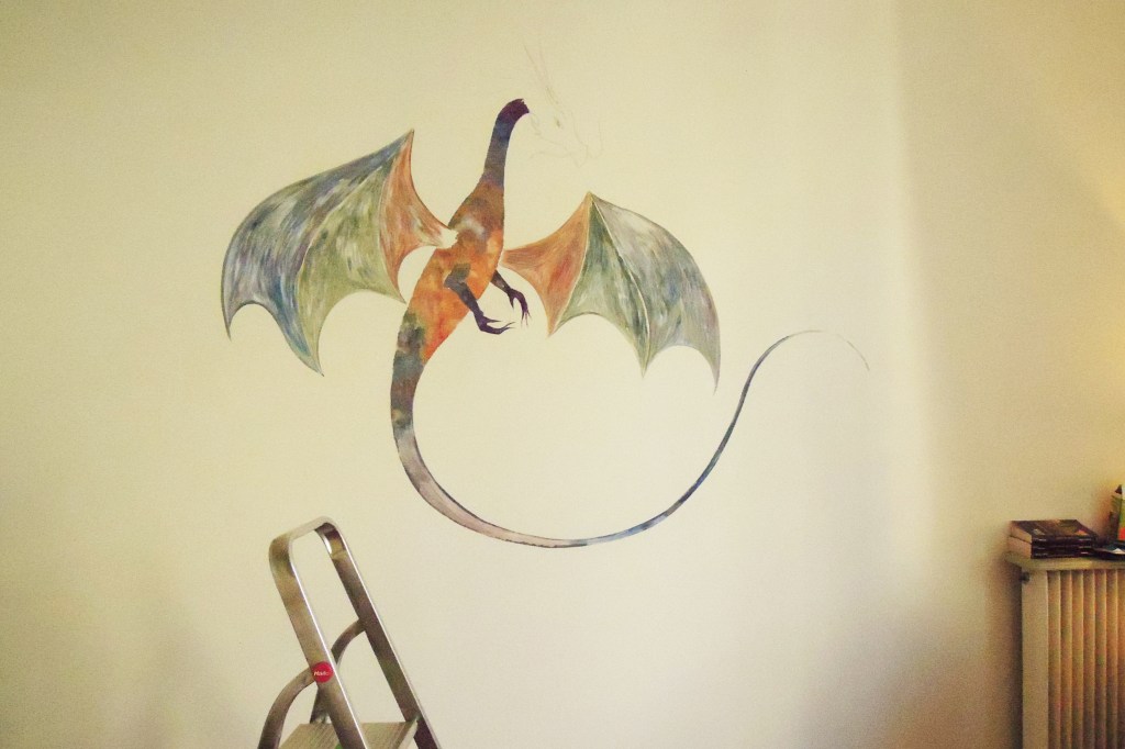J’ai donc mis mon pinceau dans un engrenage dans lequel je m’épanouis aujourd’hui encore ! Je comprends maintenant que ce qui était instinctif et plus fort que moi au départ, je me le suis approprié, je l’ai développé et mûri. Je vois aussi que ma passion peut procurer du plaisir aux autres, et c’est une petite dizaine de dragons que j’ai peint directement sur les murs depuis et des centaines sur des feuilles ! Petits, grands, je m’adapte aux demandes de mes clients, et aux espaces qui me sont dédiés.