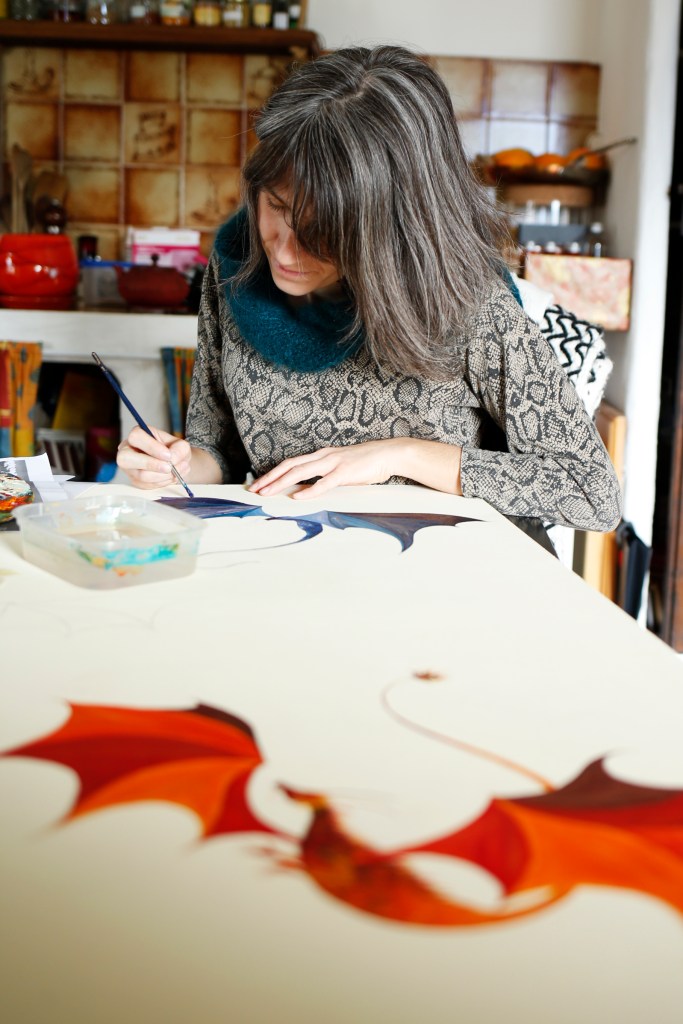 Je ne sais pas encore complètement comment expliquer l’étape suivante : je démarre avec une gamme chromatique que je décide dans sa globalité, mais les couleurs viennent instinctivement, sans que je n’arrive à l’expliquer, en rapport avec les meubles, tissus, objets qui se trouvent dans la même pièce.