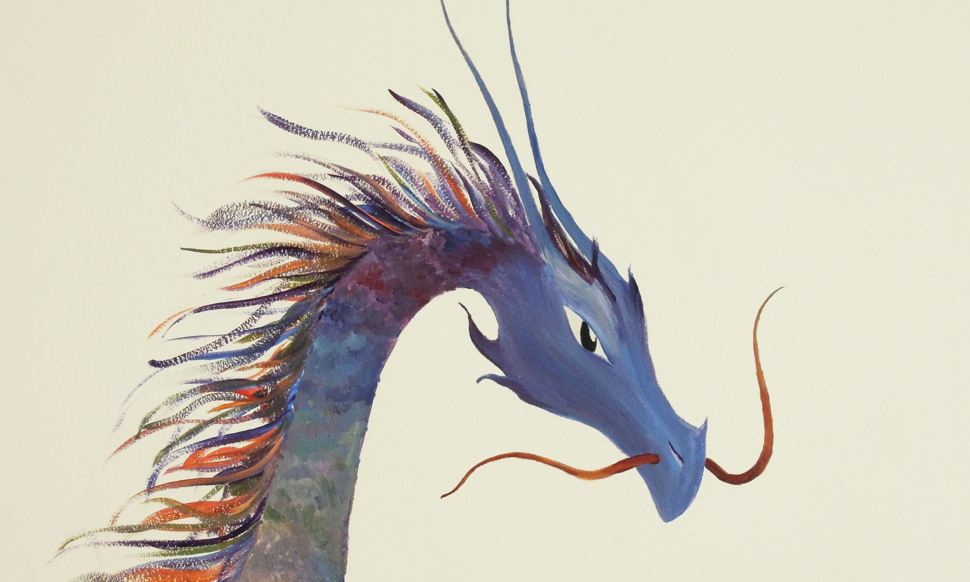 C’est en première année d’études d’arts plastiques que j’ai décidé d’en faire un travail d’une plus grande ampleur. La directive était de mettre en scène un héros. J’ai commencé mes croquis en repartant des représentations de Saint-Michel ou Saint-Georges combattant le dragon, très présentes dans l’histoire de l’art occidentale depuis des siècles. Mais j’ai très vite compris que le héros, pour moi, n’était pas le Saint, mais bien le dragon asiatique, que sa symbolique en tant que créature mythique, à l’origine du monde, était beaucoup plus forte et plus intéressante pour moi.