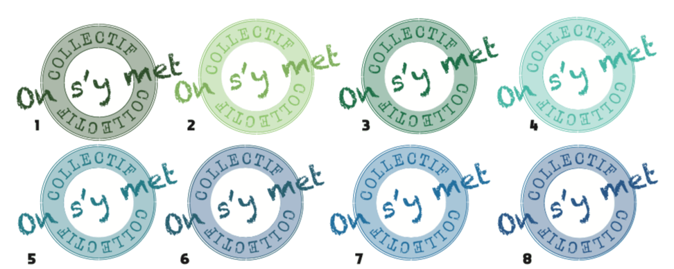 Puis, en travaillant un peu plus avec l’équipe Com’, nous arrêtons notre choix sur un logo définitif que je décline ensuite en niveaux de gris pour les impressions en noir et blanc, et en blanc pour pouvoir le placer sur des fonds déjà colorés.